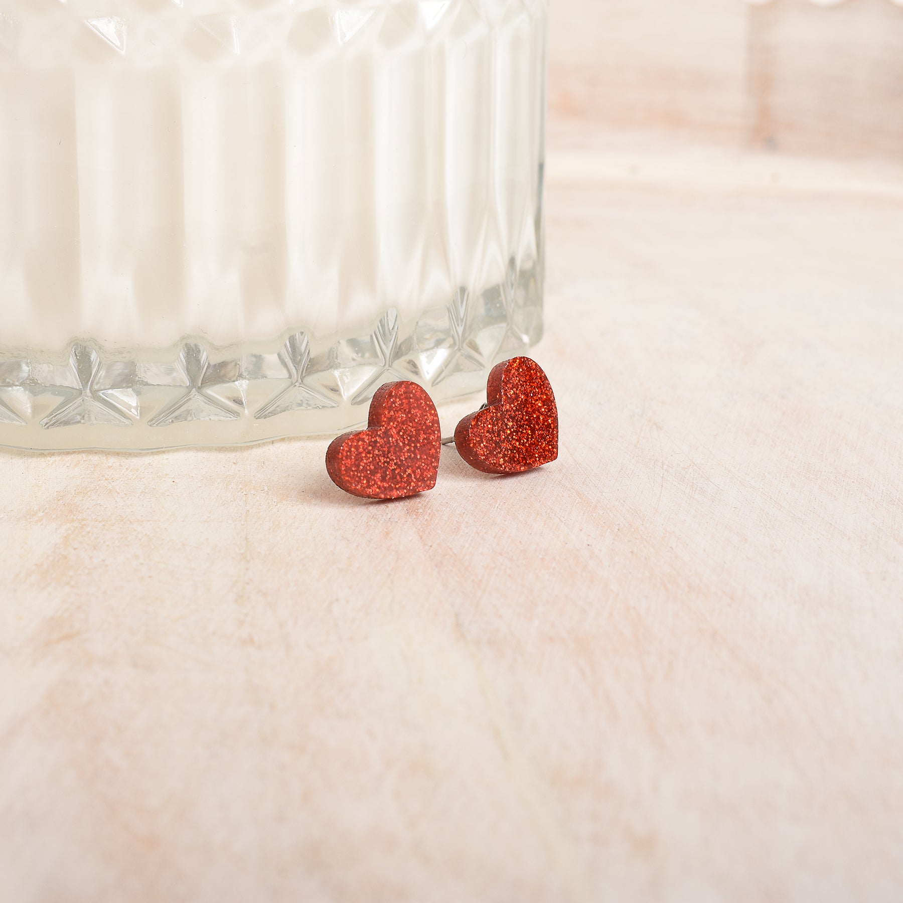 Red Glittery Heart Earrings