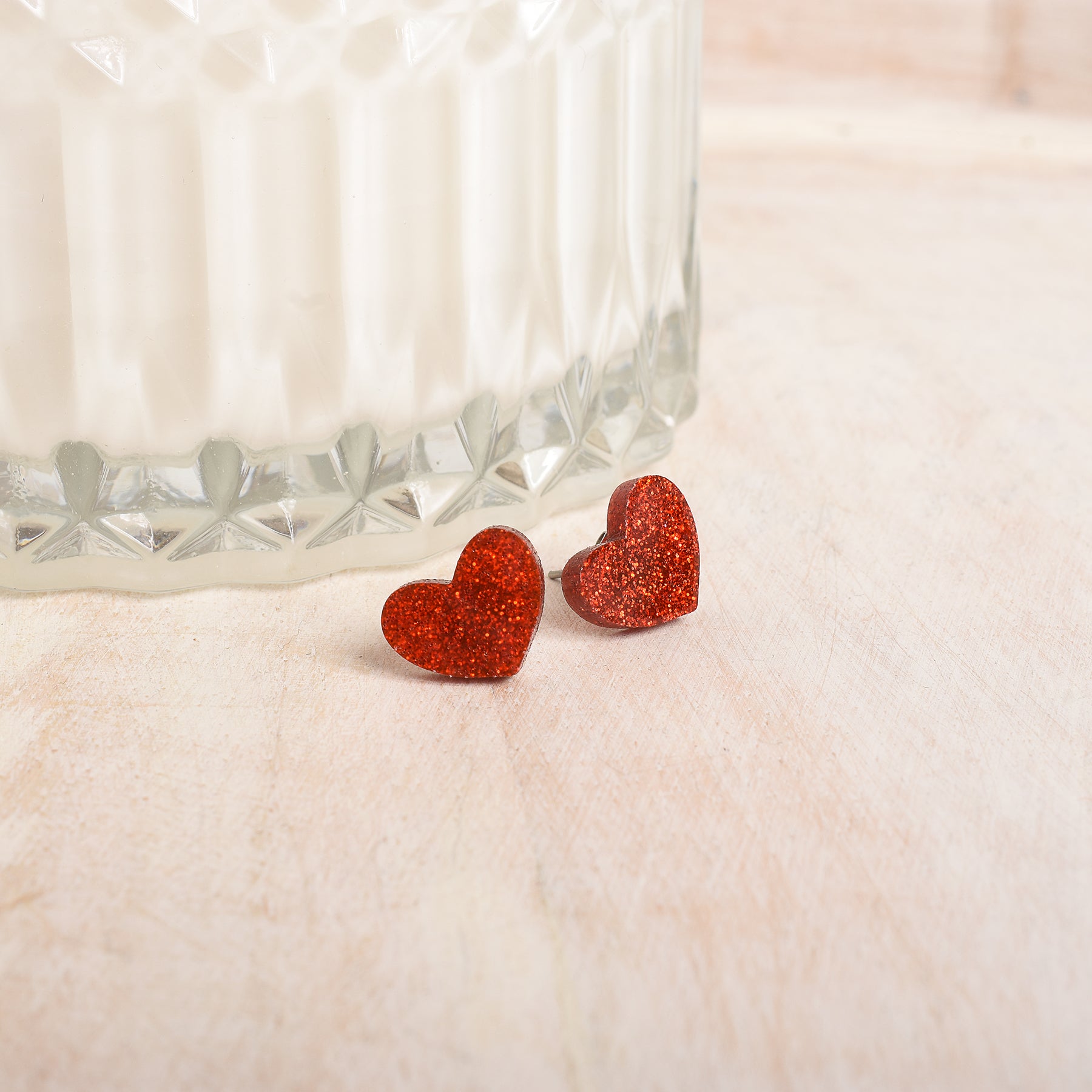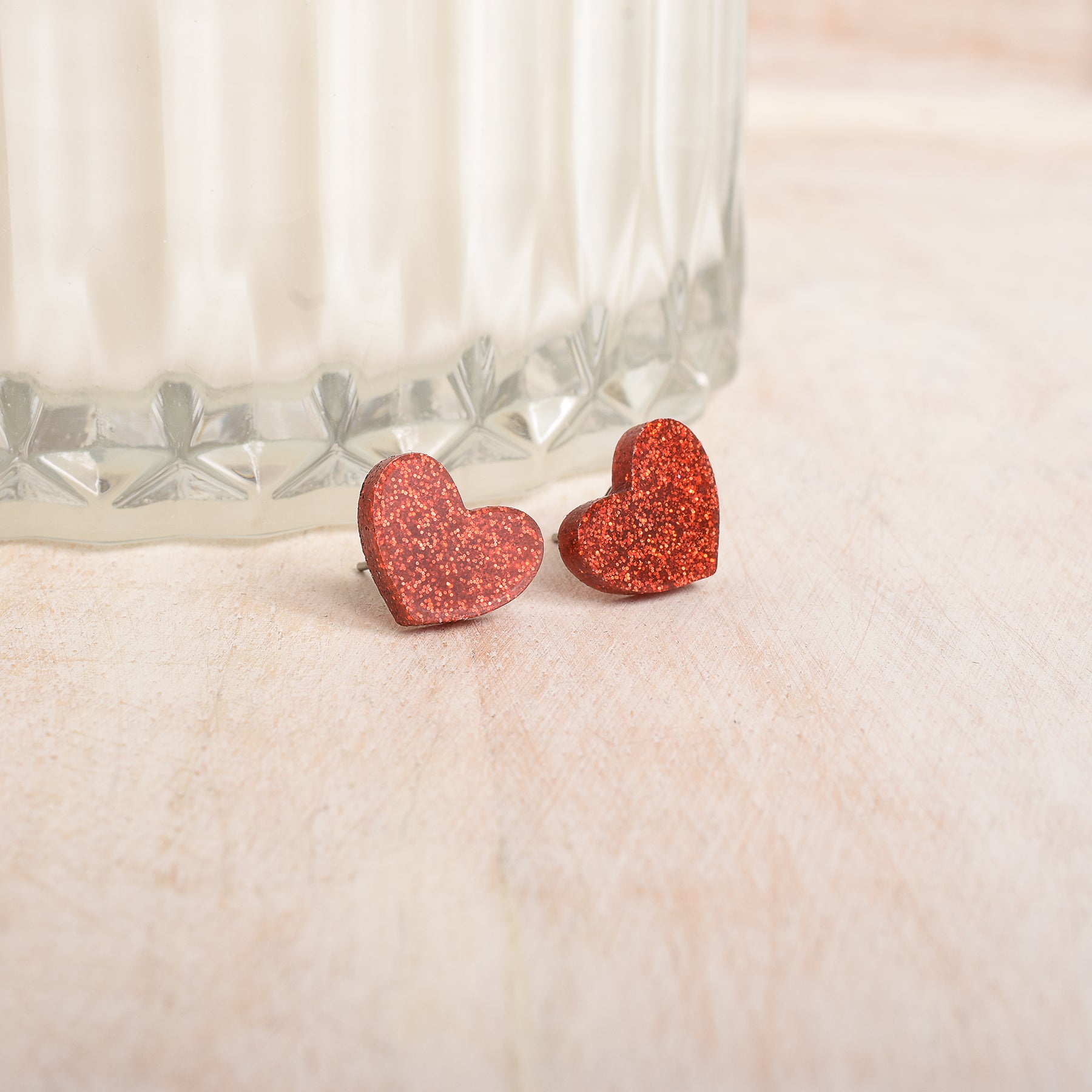 Brighten up your look with these glittery red heart stud earrings! Perfect for anyone who loves adding a sparkle to their style, these earrings are ideal for teenagers, young adults, or anyone wishing to dazzle at their next outing. Think of these as the perfect gift for birthdays, anniversaries, or even a special Valentine's Day surprise. Their radiant red shimmer makes every occasion a bit more special!